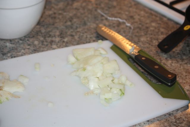 While the sausage defrosts, I chop the onions, carrots and zucchini.